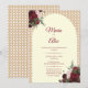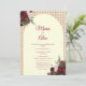 The soft neutral background highlights your wedding details while the natural rattan pattern adds a sophisticated organic touch. Burgundy and cream florals frame the design, giving it a timeless romantic look.