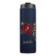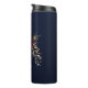Elegant burgundy flowers with some romantic gold leaves on navy blue background thermal tumbler