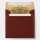 For Square invitations. "Elegant Burgundy Gold Classy Leaf Wreath Wedding Envelopes." Your return address and monogram initials are personalised. A photo of gold leaf fills the inside (no real gold is used) and a rich marsala, red wine, burgundy background colour works with a wide range of wedding designs and styles. Art by internationally licensed artist and designer, Audrey Jeanne Roberts, copyright.