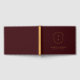 An elegant wedding guest book featuring a refined burgundy palette with soft gold accents and a classic crest monogram. The timeless layout creates a sophisticated keepsake for guests to sign and share their well-wishes. Perfect for formal, evening, or fall weddings, this guest book coordinates seamlessly with your burgundy and gold suite and adds a polished, luxurious touch to your reception.