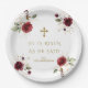 Elegant Burgundy Gold Flowers He Is Risen Easter Paper Plate