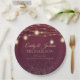 Elegant Burgundy Gold Glitter String Light Wedding Paper Plate