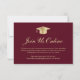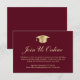 Elegant downloadable burgundy red enclosure card to provide an online option for guests who cannot physically attend your graduation party in person. This design features a gold grad cap, "Join Us Online" in a classic gold script and the virtual online details in modern gold typography.
