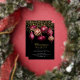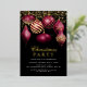 This elegant holiday party invitation features beautiful Christmas ornaments in burgundy and gold with gold string lights on a black background. Text can be easily changed by clicking "Personalise". Perfect for those family or business holiday parties.