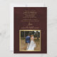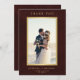 Simple classic modern jewel deep burgundy and gold frame minimalist typography wedding thank you card with 2 custom photos on a vintage style antique distressed looking background. +++++++++++ The invite is suitable for an elegant classy formal wedding ceremony and reception.