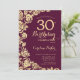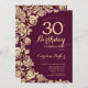 Elegant Burgundy Gold Roses 30th Birthday Invitation