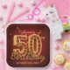 Celebrate a milestone fiftieth in luxurious style with this elegant burgundy and gold 50th birthday party paper plate. Featuring stunning 3D gold typography encrusted with ruby red gems, this design is surrounded by festive gold ribbons and glowing confetti over a rich, dark red background. Perfect for a glamorous women's 50th birthday celebration or anniversary. Easily edit the name and event date using the template text fields to perfectly match your special event.