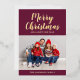 Personalized Elegant Burgundy Gold Script Christmas Photo Foil Holiday Card.