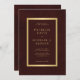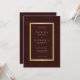 Simple classic modern jewel tone of deep red burgundy and gold frame minimalist typography wedding invitation on vintage style background. +++++++++++ The invite is suitable for an elegant classy formal autumn fall or winter wedding ceremony and reception.