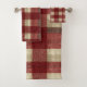 Elegant Burgundy Ivory Rust Red Plaid Pattern Bath Towel Set