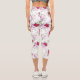 Elegant Burgundy & Lavender Floral Rose Pattern Capri Leggings