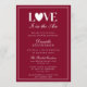 The bold LOVE header with its signature heart detail adds a sweet, celebratory touch without overwhelming the refined layout. Below, flowing script paired with traditional serif lettering creates a beautifully balanced composition that feels elevated, graceful, and warmly welcoming. This minimalist, type-forward design appeals to brides who want something chic and understated yet undeniably stylish for their pre-wedding celebration.