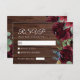 Elegant Burgundy & Marsala Flowers Wood Wedding RSVP Card