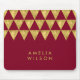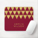 Elegant burgundy mouse pad featuring chic faux gold triangle pattern that you can personalise with your name.