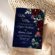 Elegant Burgundy & Navy Blue Flowers Wood Wedding Invitation