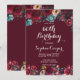Elegant Burgundy Navy Floral 60th Birthday Party Invitation