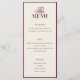 Create your own custom wedding menu cards in a luxurious old money style. Add your wedding food menu in elegant, timeless typography featured here in burgundy and cream color design.