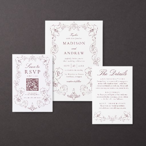 Add a rich, romantic touch to your reception decor with this Elegant Burgundy Ornate Floral Frame Wedding Table Number Card. A deep burgundy botanical frame with elegant scrolling flourishes surrounds the table number, creating a refined focal point that complements fall weddings, formal venues, and classic wedding color palettes. “Table” is presented in graceful script above a bold, easy-to-read number, while the couple’s names and wedding date appear below for a coordinated and personalized finish. This burgundy wedding table number design pairs beautifully with traditional, vintage-inspired, and black tie wedding stationery suites. This card measures 3.5"x5". Edit each table number individually and add them to your cart to ensure a smooth ordering process.
