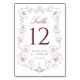 Elegant Burgundy Ornate Floral Frame Wedding Table Number