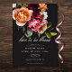 Celebrate love in timeless elegance. Our captivating bridal shower "love is in bloom" invitation feature a sophisticated black background, the perfect palette for a captivating bouquet. Imagine a corner arrangement of blush pink, burgundy and creamy white realistic flowers with dark olive green foliage, creating a sense of quiet opulence. This enchanting design sets the stage for an intimate gathering filled with heartfelt moments and cherished memories. Created by Simply Farmhouse Press.