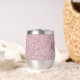 This wine tumbler glass has a pretty burgundy, pink, and silver faux glitter background that especially complements the stainless steel finish. At the centre is your name on a pink oval with burgundy border. Elegant!