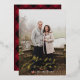 Elegant foil holiday card featuring "Merry Christmas" displayed in gold foil script. Personalise the front of the foil Christmas card with your favourite vertical photo and name. The card reverses to a burgundy buffalo plaid pattern with space for additional photos or text. Placeholder photo © John Hope Photography: www.flickr.com/people/johnhopephotography and provided by Creative Commons Attribution 2.0 Generic: https://creativecommons.org/licenses/by/2.0/