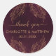 Elegant Burgundy Red And Gold Wedding Thank You Classic Round Sticker