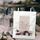 Elegant floral thank you favour bags with burgundy red and ivory roses, greenery, eucalyptus leaves and gold splatters. Thank you is hand lettered with love heart flourish and the template is set up for you to add your thank you message. Please browse my Royal Rose collection for coordinating invitations, stationery, gifts and day of event decor or, message me to create design templates for the items you need.