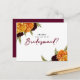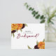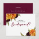 This sophisticated postcard is designed to ask "Will You Be My Bridesmaid?" with a rich, vibrant, and warm aesthetic perfect for a fall or harvest-themed wedding. A horizontal flat card with a clean white background features bold splashes of marigold/golden yellow and deep burgundy/red-brown in the floral accents.