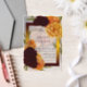This elegant wedding invitation features a stunning design with deep burgundy red and vibrant orange watercolor marigolds. The floral art is beautifully framed by a gold border, giving it a classic and refined feel. The text is presented in a modern, clean font, and the layout is simple yet sophisticated. This invitation is perfect for couples who want to announce their special day with a touch of timeless charm and vibrant elegance.