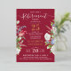 This elegant retirement party invitation has an elegant design featuring a floral theme with magenta red tulip, green leaves, lavender blue and white botanical | wild flowers. This beautiful, garden sample is set up on a stylish burgundy background.