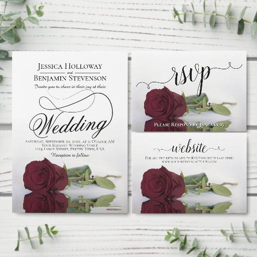 Reflecting Burgundy Rose Elegant Wedding SuiteDesigned by Cat Ritchie