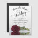 These beautiful magnetic cards are the perfect way to let your friends and family know to save the date for your upcoming wedding. They feature a romantic design with a single long-stemmed burgundy, maroon, or wine red coloured rose reflecting in a pool with waves and ripples. Classic & elegant, the simple design includes lacy script calligraphy lettering.