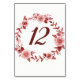 Elegant Burgundy Rose Wreath Table Number Cards