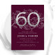 Elegant burgundy silver 60th birthday party invitation. Customisable modern feminine design featuring roses botanical accents and faux glitter silver. Simple floral invite card perfect for a stylish female bday celebration. Personalise with your own details. Printed Zazzle invitations or instant download digital printable template.