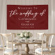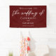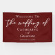 This solid burgundy wedding banner features classic white script for a bride and groom getting married at a formal evening venue. Embrace romance with this rich, bold colour. Minimalist and romantic typography reception decor for a modern couple.