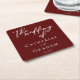 Elegant Burgundy Typography Evening Wedding Square Paper Coaster