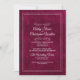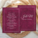 Announce your celebration with timeless elegance using this deep berry velvet-look wedding invitation. The front features refined double-line borders, graceful script names, and classic serif details for a beautifully balanced, formal presentation. Coordinating flourishes add a romantic touch, while the rich textured background brings depth and sophistication suited for evening weddings, ballroom venues, and upscale ceremonies.