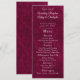 Elevate your wedding reception tables with this elegant wedding reception menu, designed with a rich berry velvet–style texture and timeless typography. Featuring romantic script lettering for the couple’s names and refined serif text for menu details, this design blends classic sophistication with modern luxury. Delicate ornamental accents and a balanced vertical layout make the menu easy to read while adding a polished finishing touch to each place setting. Ideal for formal, semi-formal, and evening receptions—especially fall and winter celebrations—this reception menu coordinates seamlessly with velvet-inspired invitations, programs, and matching wedding stationery for a cohesive, upscale look.
