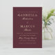 This simple and elegant wedding invitation features a beautiful dark burgundy colour with coordinating classic gold tinted white typography. The back includes one custom photo and rsvp qr code, so guests can respond on your wedding website.