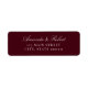 Burgundy wedding return address labels featuring elegant old money aesthetic typography.