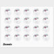 Elegant Floral Wedding Sticker depicts beautiful watercolor burgundy, blue and white roses with silver and green leaves over splashes of dusty grey and pink.