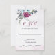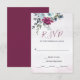 Elegant Floral Wedding RSVP Card depicts beautiful watercolor burgundy, blue and white roses with silver and green leaves over splashes of dusty grey and pink.