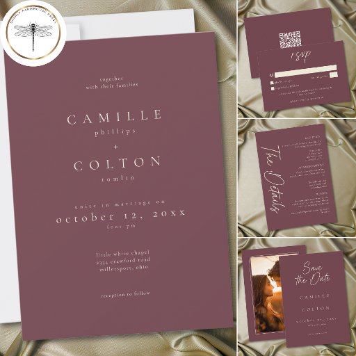 Elegant Burgundy Wine Minimalist Wedding Invitation