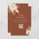 Modern wedding enclosure cards with elegant boho fall floral accents, minimalist typography design on burnt orange terracotta colour. Features custom QR code for your wedding website or other information.