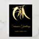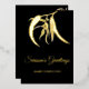 This luxury gold foil on Black Season's Greetings card looks elegant with the contrast between gold botanicals against the rich black background. The gold Eucalyptus (gum) leaf watercolor is simple and beautiful botanical with a Christmas feel. The 'Season's Greeting" message can be customised to any greeting that fits with your preferences and traditions. On the back you can add your own message and your logo to promote your brand. A matching envelope in hunter green with the Eucalyptus leaf design will complete your mailing in style.