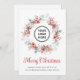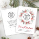 Corporate holiday greeting card for your business or organisation featuring your logo within a watercolor wreath of red florals, berries and seasonal greenery, and "Merry Christmas" in an elegant script. Personalise your greeting and company name in simple modern typography. On the back, add an additional message of customer appreciation and add your website, slogan, contact information, etc.