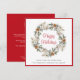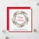 Corporate Christmas greeting card for your business or organisation featuring a watercolor wreath composed of white winter florals, pinecones and seasonal sage green pine leaves and greenery, "Happy Holidays" in an elegant red script and your greeting and company name in simple modern typography. On the back, personalise an additional message of customer appreciation, upload your logo and input your website address to create a QR code that your customers can scan to easily connect to your online platforms.