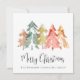 Elegant square holiday card for your business featuring a modern watercolor abstract of pine trees, "Merry Christmas" in a stylish script and your company name in classic serif typography. On the back, upload your corporate logo, personalise a seasonal message of customer appreciation, and add your website or other information if desired.