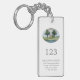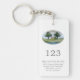 Beautiful Elegant White Business Property Room Keychain. Personalise with your image front and back. Customise the text front and back shown in grey on white. Text template fields provided front and back example shown as Front: Room/Suite/Office Number, business company name, street address & phone number. Back : Business Company Property Name, short message/instruction, custom generated QR Code (in matching grey but can be any colour) - add your url, plus contact information. All text, fonts, colours, images may be customised. We invite you to visit our Zazzle store, GJ Design Co, to view matching products and more. Please contact us if you require any design assistance.